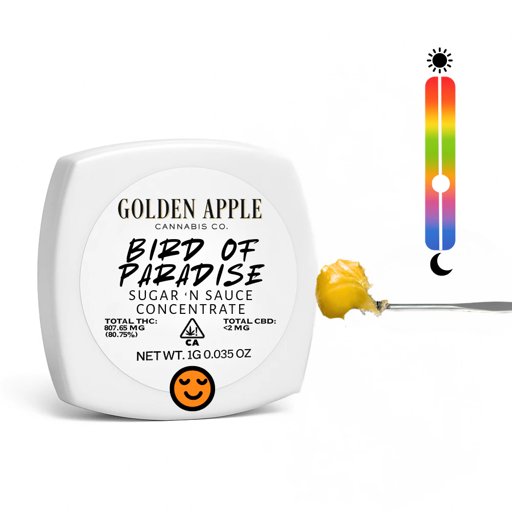 Bird of Paradise Sugar & Sauce delivers a smooth, balanced experience designed to quiet the mind and soften the edges of the day. The effect settles in with gentle body ease and a steady, relaxed headspace, helping you decompress without feeling heavy or sleepy. It’s a great choice for moments when you want stress to fade while staying clear, comfortable, and present. Cannabinoids: Total THC: 807.6 mg (80.76%) Total CBD: <2mg