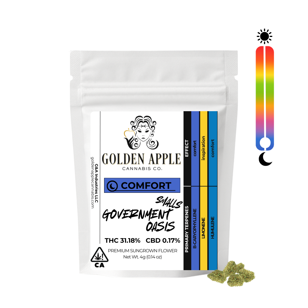Government Oasis starts with gentle clarity and descends into a full-body, emotionally stabilizing experience. It’s the kind of cultivar that holds space for decompression, recovery, or emotional reset. This product is in small nugg form. Cultivated by Sweet Sisters Family Farm.