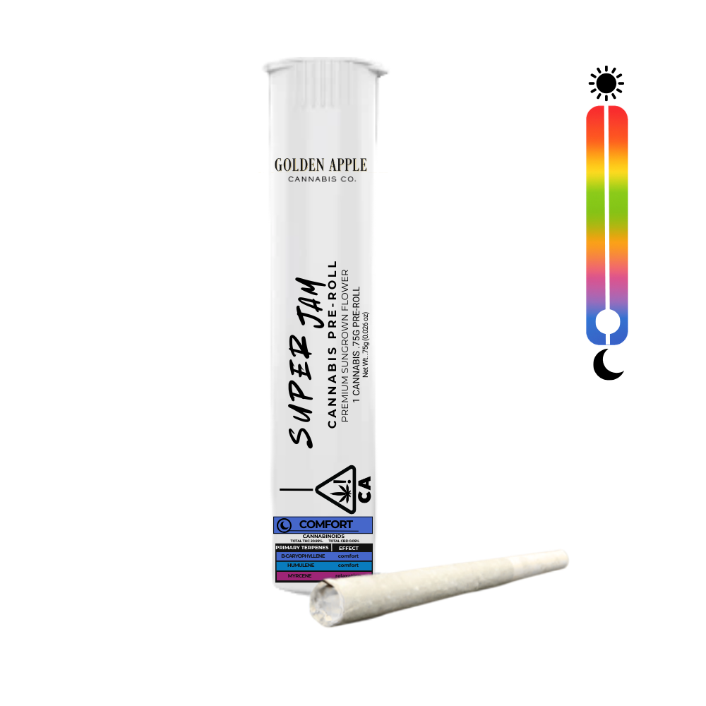 Sweet, rich, and slow-burning, Super Jam delivers a fruit-forward inhale that settles into a warm, grounding body experience. This single pre-roll leans into deep comfort, softening tension and easing you into a relaxed, steady state. Ideal for unwinding without disappearing. Cannabinoids: THC: 20.99% | CBD: 0.09%